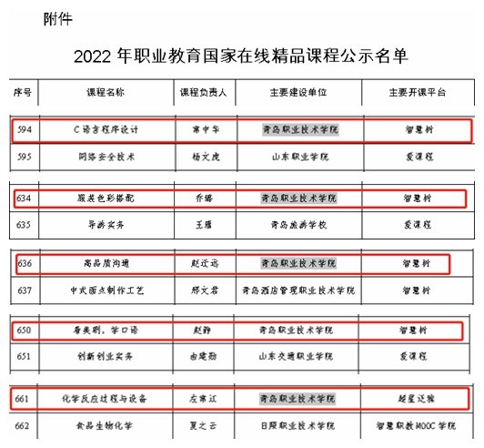 12月15日,《C语言程序设计》等5门课程入选职业教育国家在线精品课程,《生活与会计》等13门课程被认定为省级职业教育在线精品课程。国家级课程入选数量及省级课程认定数量均在省内高职院校中名列前茅,实现了学校省级以上在线精品课程新的突破。75门课程入选国家高等教育智慧教育平台,居全国高职院校榜首。学校推荐的10门系列课程(包含216个微课程单元)全部获评首批社区教育“能者为师”系列特色课程,获评的课程数和微课程数均居全省第一。