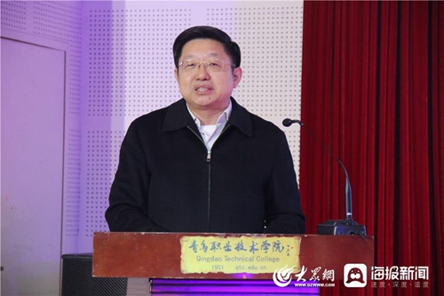 党委书记王金生讲话。他指出,一直以来,学校党委始终围绕“立德树人”根本任务,把文化传承创新摆在重要位置,以争做文化自信排头兵作为新形势下加强和改进高校思想政治工作的应有之义,以争当价值自信风向标作为办好中国特色社会主义大学的分内担当,深入挖掘、用足用好传统文化资源,先后成立中华优秀传统文化研究中心,组建传统文化教育团队,建成孔子、老子、墨子三个文化广场,开设“青职大讲堂”,实施“文明修身工程”,以“厚德乐学、修能致用”的青职表达和“德技并修、志愿服务”的青职实践深入诠释社会主义核心价值观,不断打造“全环境”育人生态,推进大学精神与时代精神同频共振,与城市发展同向发力。2022年学校成功入选“山东省首批中华优秀传统文化传承示范校”。下一步,学校党委将以“山东省中华优秀传统文化传承示范校”建设为契机,与创建全国文明校园相结合,深入实施“固本工程”“铸魂工程”和“底色工程”,使中华优秀传统文化在校园找到更多传承发展的新途径、新平台、新空间,真正实现根植于心、传递于行,成为师生前进的精神路标。