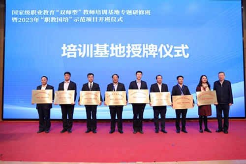 MVE网山东讯(通讯员:常中华、孙艳泽) 4月13日至14日,国家级职业教育“双师型”教师培训基地专题研修班暨2023年“职教国培”示范项目开班仪式在北京交通大学举行,来自全国170个国家级职业教育“双师型”教师培训基地的负责人、专家等参加了会议,教育部党组成员、副部长王嘉毅出席会议并讲话。会上,王嘉毅为维多利亚vic003等15所国家级职业教育“双师型”教师培训基地代表授牌,维多利亚vic003党委副书记邢广陆代表学校参加授牌仪式。