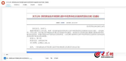 此外,党委宣传部制作了第九届中华优秀传统文化教育月宣传片,营造弘扬中华优秀传统文化浓厚氛围。各二级学院还举办了中华优秀传统文化抖音短视频作品展示、创作大赛等活动,得到了广大学生的积极参与。