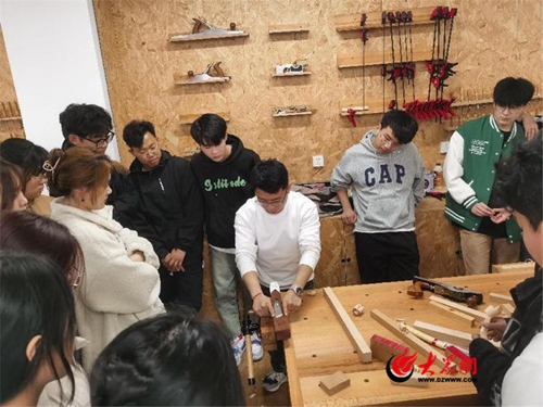 传统民间技艺体验活动中,体育健康学院邀请央视中艺盛典特金奖获得者、最美非遗传承人吴云凤开展皮影文化艺术进校园活动,为师生表演了皮影传统剧目《四郎探母》,学生们在吴云凤的指导下,动手体验了皮影的操作,沉浸式感受了皮影文化带来的乐趣。艺术学院邀请全国技术能手吴忌开展榫卯木作体验活动,师生通过使用台锯、曲线锯、铣机、开榫机等各种手动和电动工具共同制作了榫卯结构便携桌子,在实践学习中体验古人工匠精神及榫卯的创造力、和谐美。商学院邀请山东省级非遗项目刘氏泥塑传承人刘梅玲开展“匠心致美•雕魂塑神”非遗文化讲座体验活动,同学们在现场学习了“揉、搓、捏、刻、压、磨、彩绘”等泥塑主要技法,感受传统泥塑的发展历程和文化内涵,体验民间传承人对非物质文化遗产的深情和坚守。