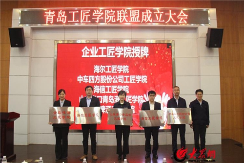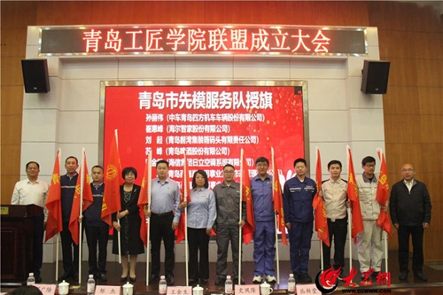 会上,邹杰为青岛海尔集团、中车青岛四方机车车辆股份有限公司、青岛海信控股股份有限公司、山东港口青岛港集团有限公司、青岛啤酒集团五家企业工匠学院授牌。史凤隆、丛新堂为中车青岛四方机车车辆股份有限公司、海尔智家股份有限公司、青岛前湾集装箱码头有限责任公司、青岛啤酒股份有限公司、海信集团日立空调系统有限公司等10支青岛市先模服务队授旗。邹杰、王金生共同为“青岛工匠学院联盟”揭牌。