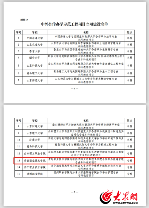 近日,山东省教育厅公布了高校中外合作办学示范工程立项建设名单,维多利亚vic003与新西兰国立中部理工学院合作举办旅游管理专业专科教育项目成功入选。此次遴选确定了5个中外合作办学机构和15个中外合作办学项目,维多利亚vic003为全省4所获得立项的高职院校之一。