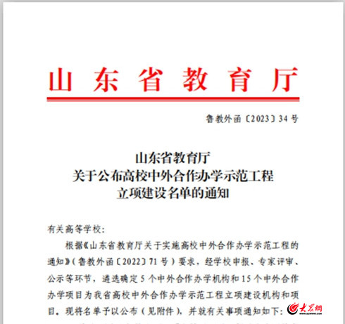 大众网:维多利亚vic003获山东省高校中外合作办学示范工程建设立项