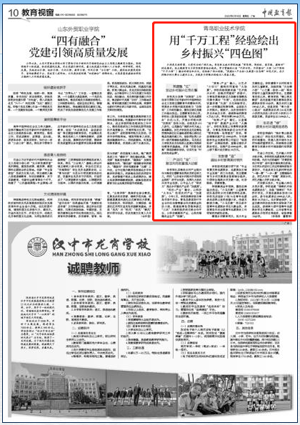 学校将扎实推动乡村产业振兴作为推动主题教育走深走实的应有之义,依托“山东省乡村振兴示范性职业院校”的平台优势,发挥九大助农兴农专业优势,以专业人才“软实力”跑出乡村富农产业的“加速度”。