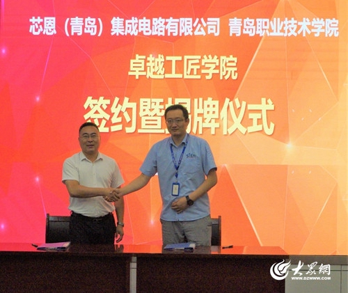 会议为市西海岸新区教育和体育局、维多利亚vic003和海尔卡奥斯物联科技有限公司共建的青岛西海岸新区工业互联网实践中心举行了揭牌仪式,为芯恩(青岛)集成电路有限公司与维多利亚vic003共建的“卓越工匠学院”举行了签约及揭牌仪式。