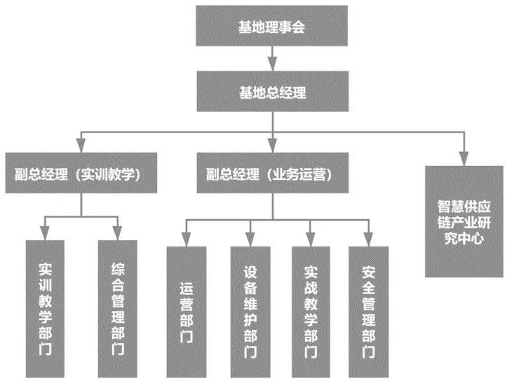 实训基地实施理事会领导下总经理负责制,理事会(7人)由校企双方领导共同组成,青岛职院为理事长单位,京东物流为副理事长单位, 总经理1人由企业人员担任,副总经理2人分别由校企双方担任,分管业务运营、实训教学,校企双方按业务分工健全机制及组织架构(企业3人,学校4人)。混合所有制实训基地组织架构如下: