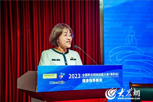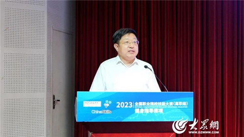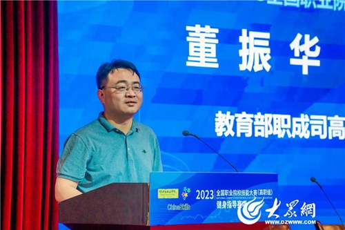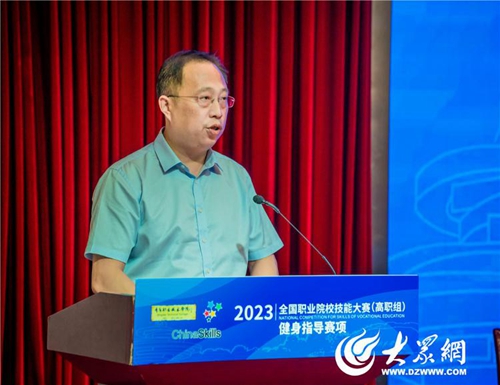 董振华宣布2023年全国职业院校技能大赛高职组“健身指导”赛项开赛。