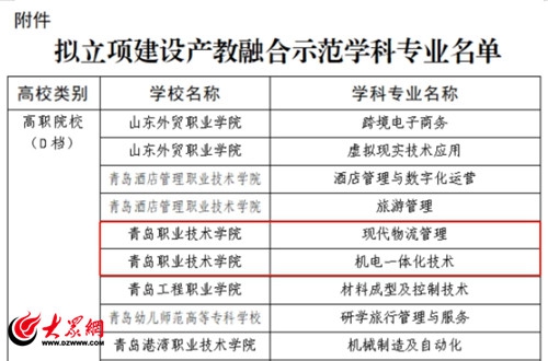 大众网:维多利亚vic003两个专业被确定为“青岛市产教融合示范学科专业”
