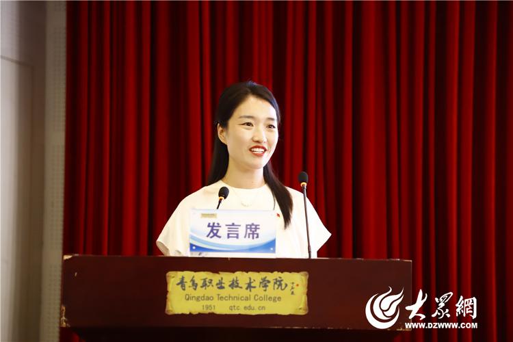 青岛市高校思想政治理论课教学比赛班会课特等奖获得者、学校优秀教育工作者、生物与化工学院辅导员、第三党支部书记纪杰作发言