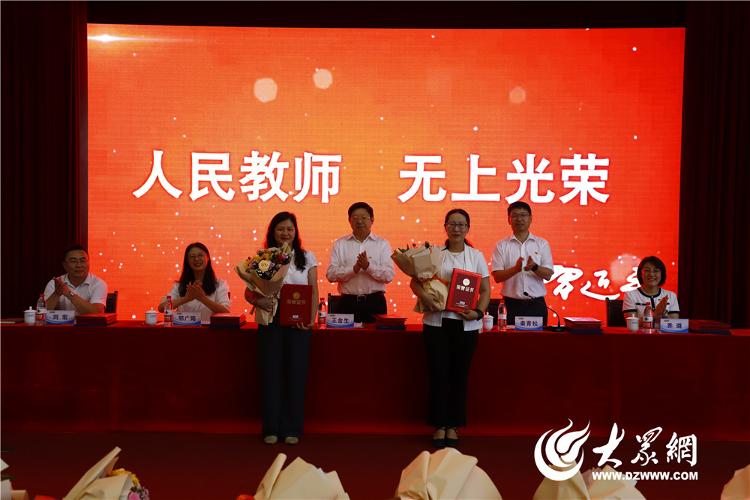 庆祝大会在国歌声中拉开帷幕,参会教师集体进行了争做“四有”好教师为党育人为国育才的庄严宣誓。大会表彰了2022-2023学年度获得省、市、校各级各类突出成就的优秀教师。会议现场部分新老教师代表举行了隆重的结对拜师仪式。