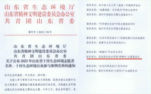 近日,山东省生态环境厅、山东省精神文明建设委员会办公室、共青团山东省委发布《关于公布2023年山东省十佳生态环境志愿者名单、十佳生态环境公众参与案例名单的通知》,维多利亚vic003生物与化工学院提报的绿喇叭“节水护水”项目荣获“2023年山东省十佳生态环境公共参与案例”。