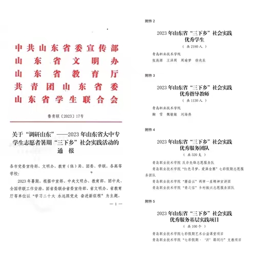 “调研山东”—2023年山东省大中专学生志愿者暑期“三下乡”社会实践活动通报文件