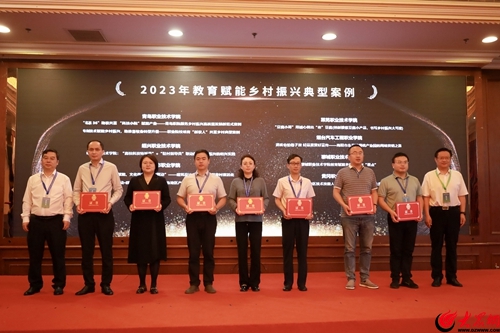 旅游学院院长王媛媛上台领取2023年教育赋能乡村振兴典型案例获奖