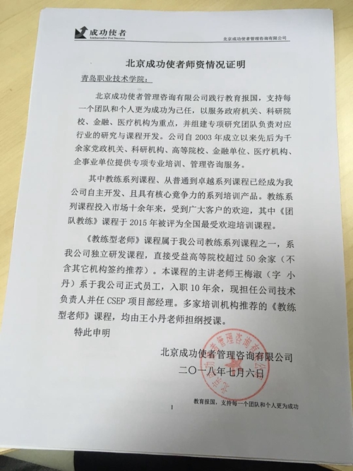 附件:北京成功使者师资情况证明